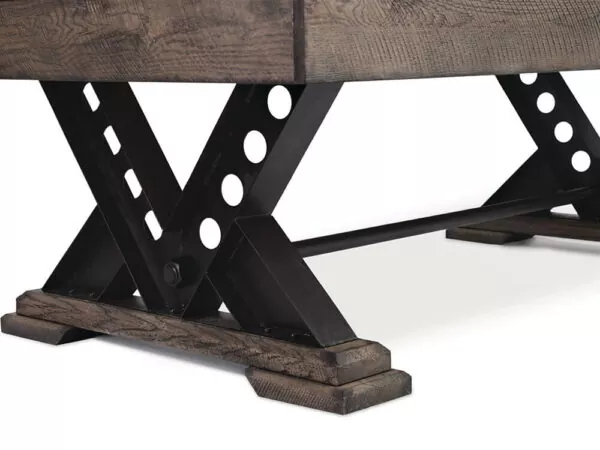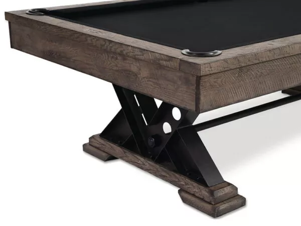 The Vienna Dining Billiard Table has a rustic look with stylish industrial-style metal v-shaped pedestal legs. This solid wood Vienna pool table will be a focal point in any game room.